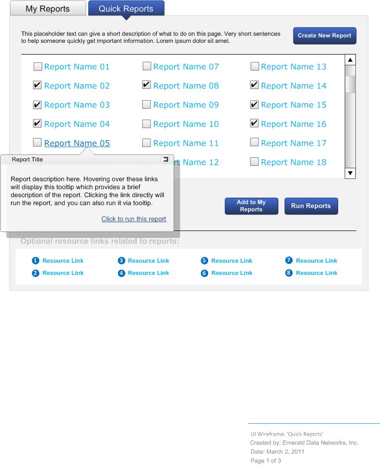 Reports Wireframes